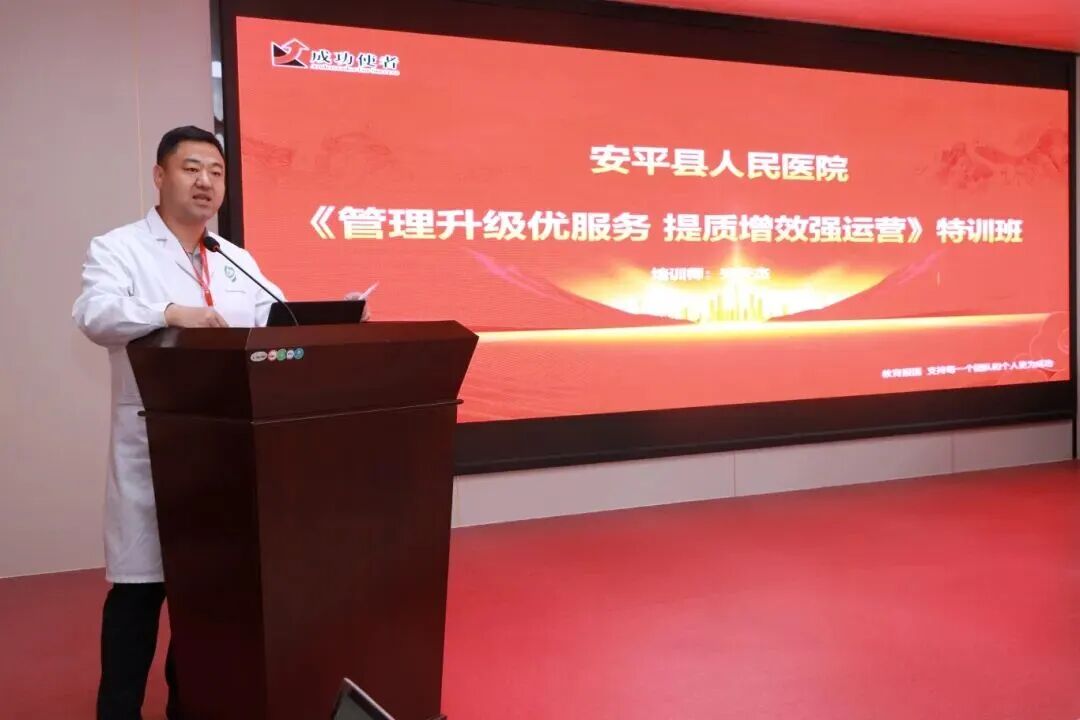 为提升运营管理能力、优化医疗服务质量、凝聚高质量发展合力,河北省衡水市安平县人民医院特邀成功使者集团专家团队举办《管理升级优服务、提质增效强运营》中高层领导团队管理能力提升集中培训会。院领导班子、中高层干部,以及安平县中医医院院长、安平县妇幼保健院书记和八个乡镇卫生院院长共92人参加培训。