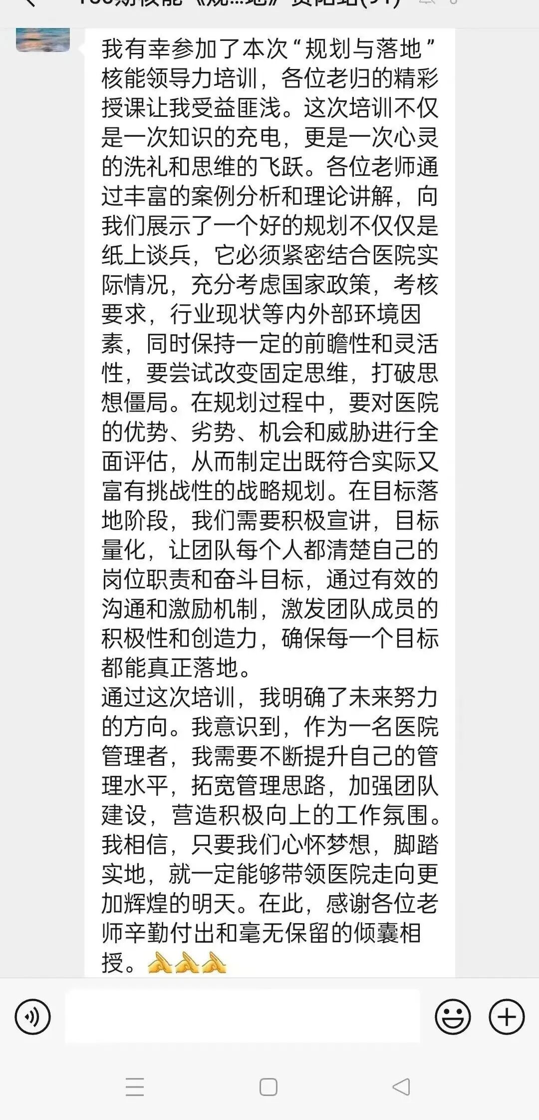 核能领导力的“落地”部分,其核心就是学会如何统一核心理念,凝心聚力,去除干扰,激发团队每个人的潜能,最终实现医院的发展目标。该课程为医院领导者提供了系统的理论和实践指导,助力医院在激烈的竞争中脱颖而出,推动医院的高质量发展。