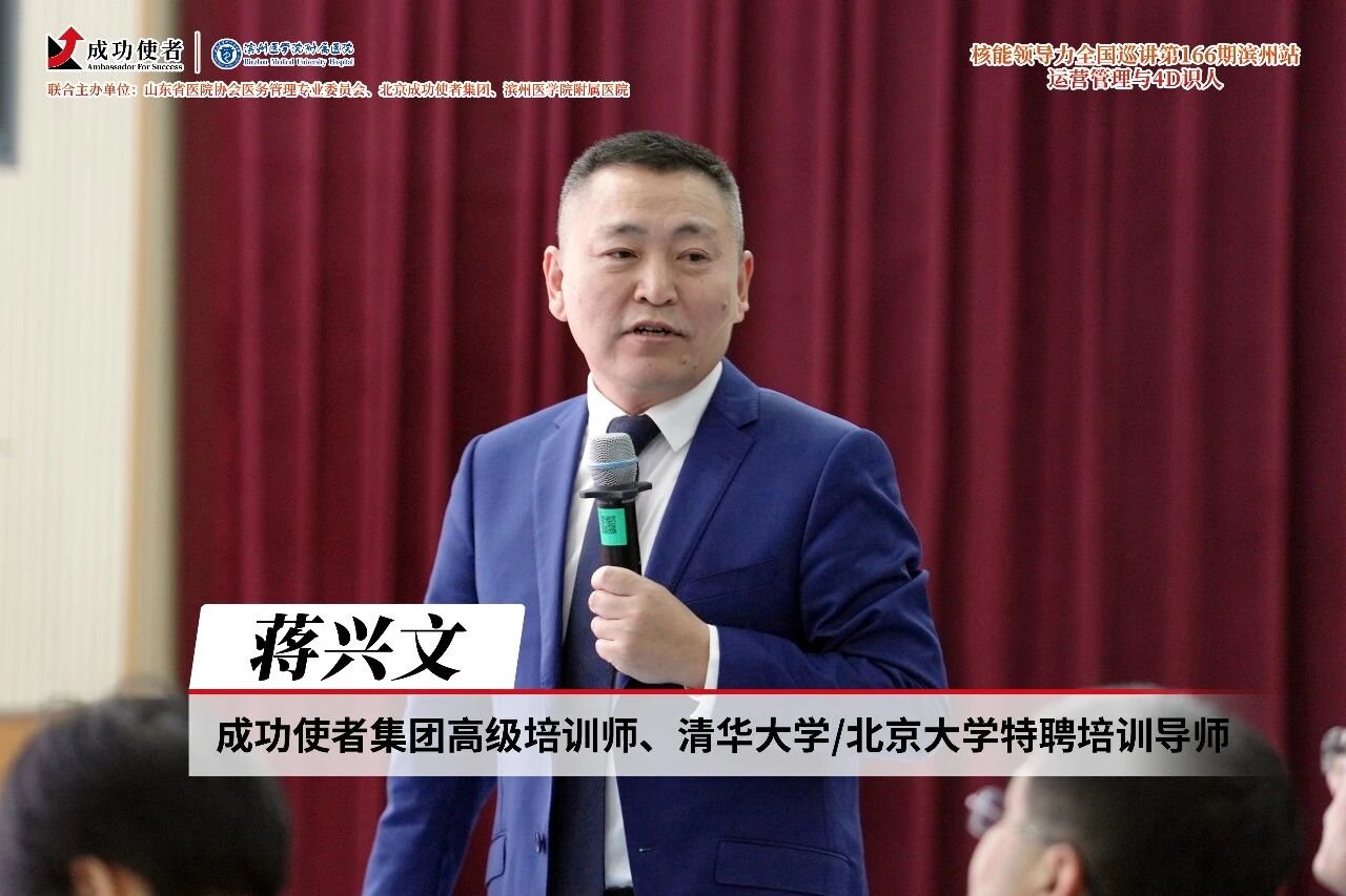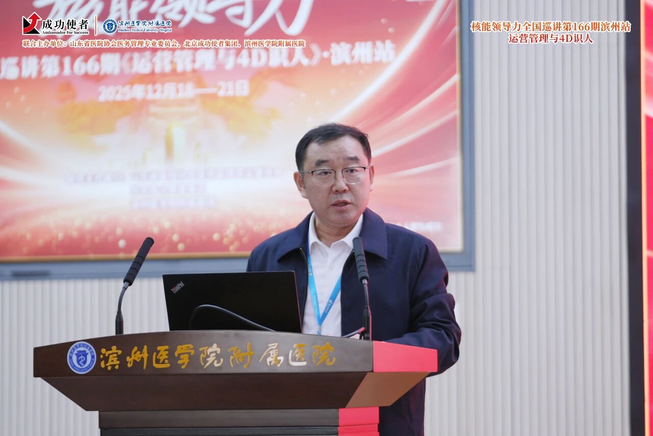 12月18日至21日,“核能领导力——运营管理与4D识人”第166期全国巡讲滨州站成功举办。本次课程由山东省医院协会医务管理专业委员会、北京成功使者集团、滨州医学院附属医院联合主办,汇集多位重量级嘉宾组成强大导师阵容,吸引了来自全国各地的医院高层管理者参与。