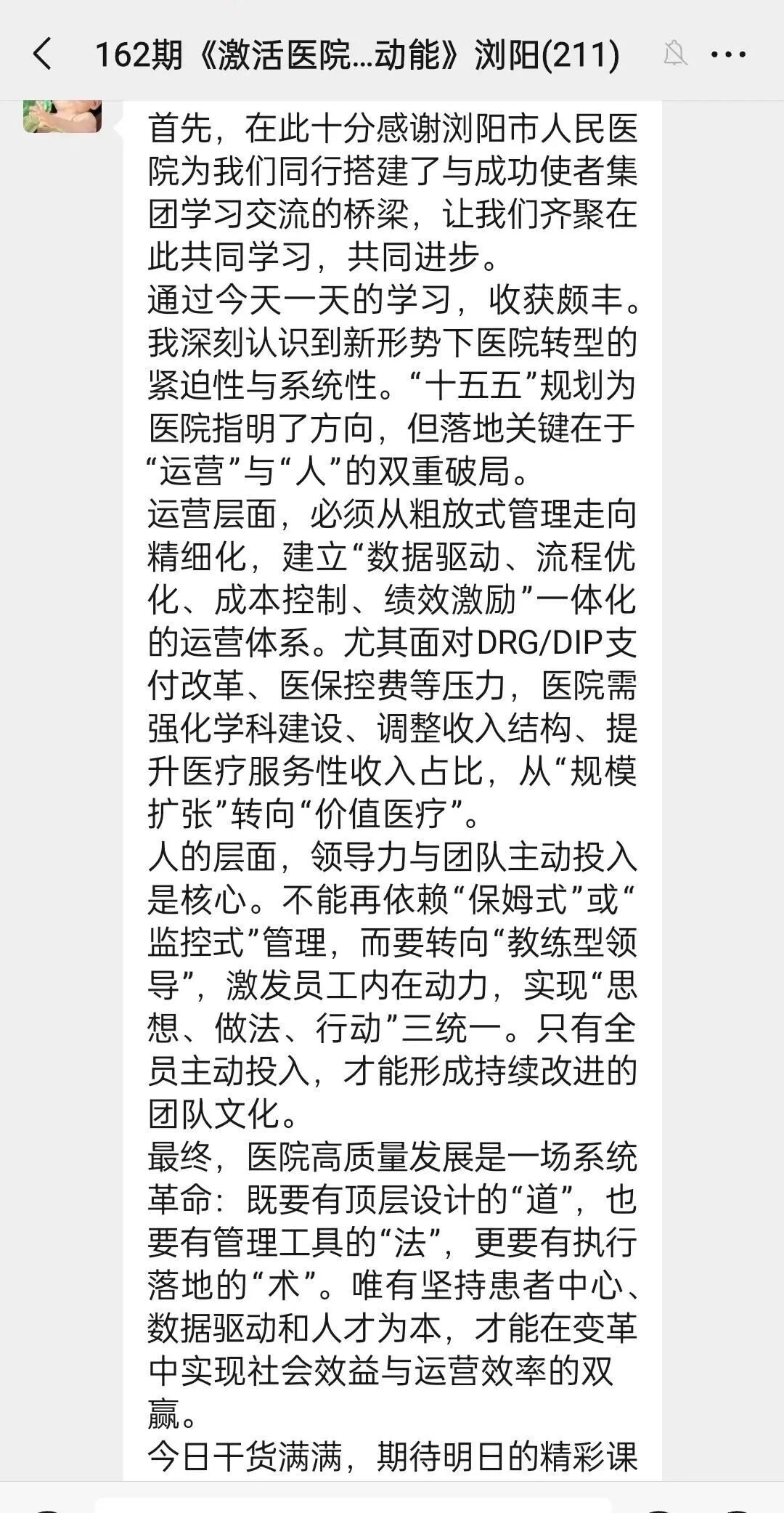 3.提高医院领导者的格局站位与领导能力,学会调动全员参与运营管理的主动性和积极性,提升医院高质量发展新效能。
