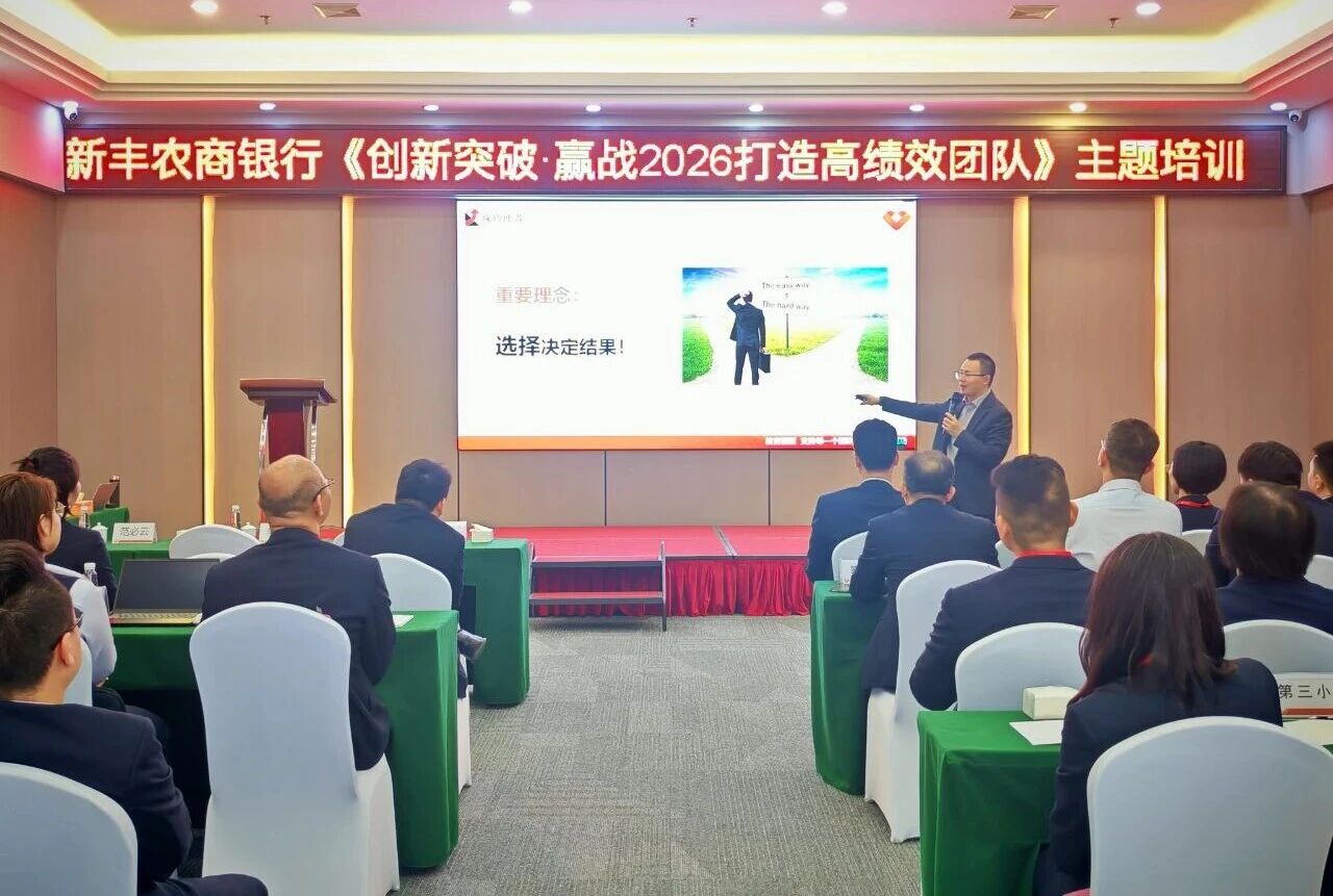 近日,成功使者集团职业培训师邢元华老师为新丰农商银行中高层管理人员、业务骨干,开展了一场题为《创新突破 赢战2026——打造高绩效团队》的专题赋能培训。本次培训融合理论引导、案例剖析、互动体验与实战研讨,旨在激发学员从思维到行为的系统性转变,为团队迎战2026年注入坚定信心与清晰路径。
