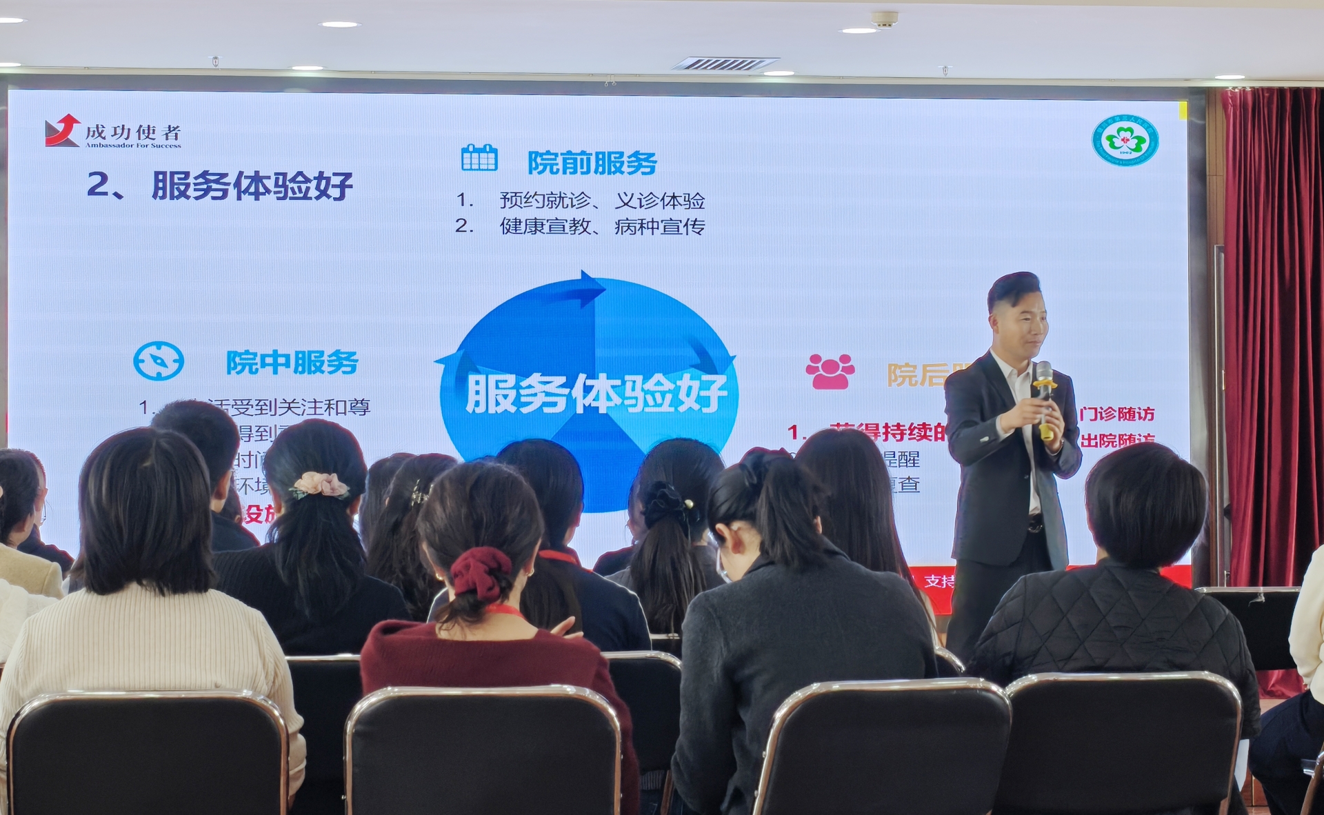 3月4日-5日,银川市第三人民医院联合北京成功使者集团,特邀山东中医药大学附属医院原院长任勇、成功使者集团高级培训师宋天杰,开展《医务人员职业成长赋能》专题培训,院领导班子、中层干部及科室骨干90人参加。