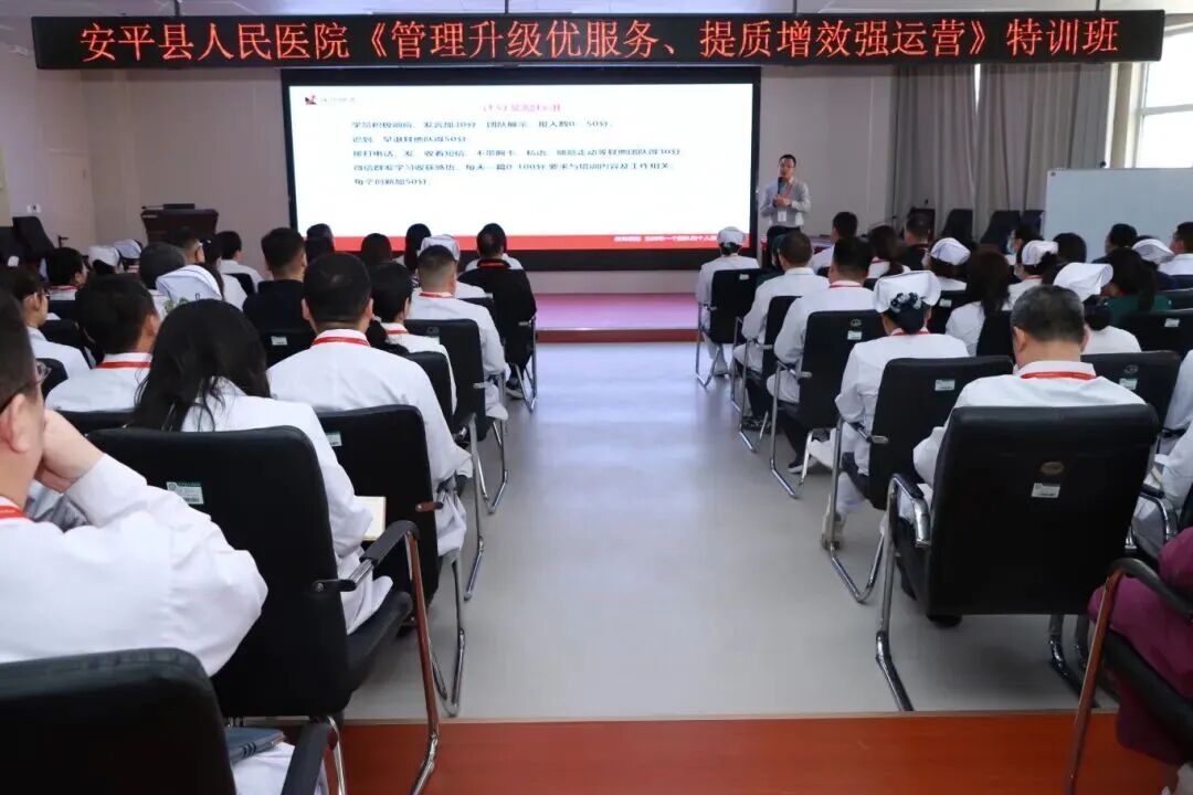 为提升运营管理能力、优化医疗服务质量、凝聚高质量发展合力,河北省衡水市安平县人民医院特邀成功使者集团专家团队举办《管理升级优服务、提质增效强运营》中高层领导团队管理能力提升集中培训会。院领导班子、中高层干部,以及安平县中医医院院长、安平县妇幼保健院书记和八个乡镇卫生院院长共92人参加培训。