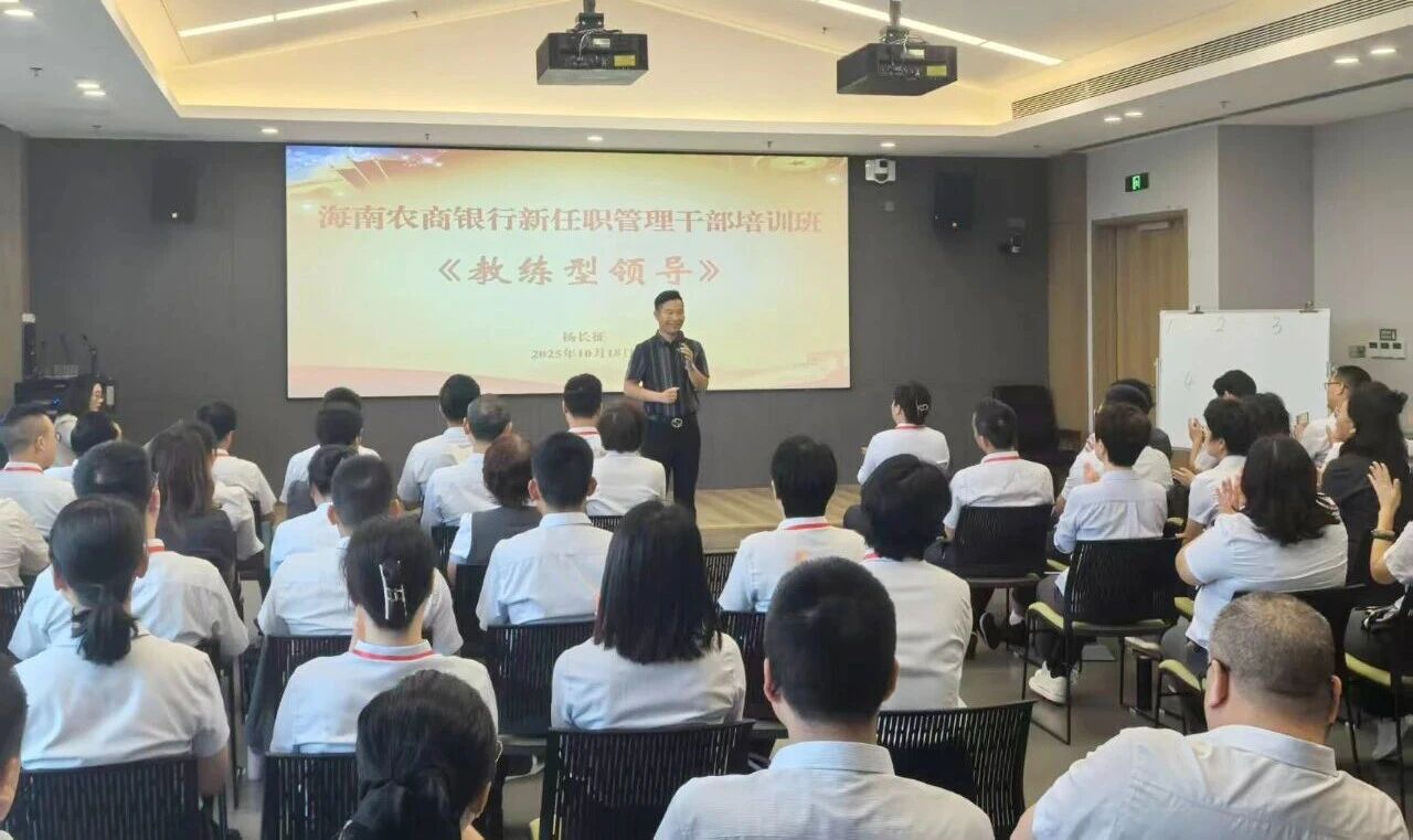 10月18日,成功使者集团董事长杨长征老师受邀为海南农商银行新任职管理干部开展“教练型领导”专题培训。本次培训围绕“教练型领导模式如何赋能组织高质量发展”展开,旨在通过系统化的理念导入与实战方法,助力海南农商银行打造一支高投入、高协同、高执行的管理团队。