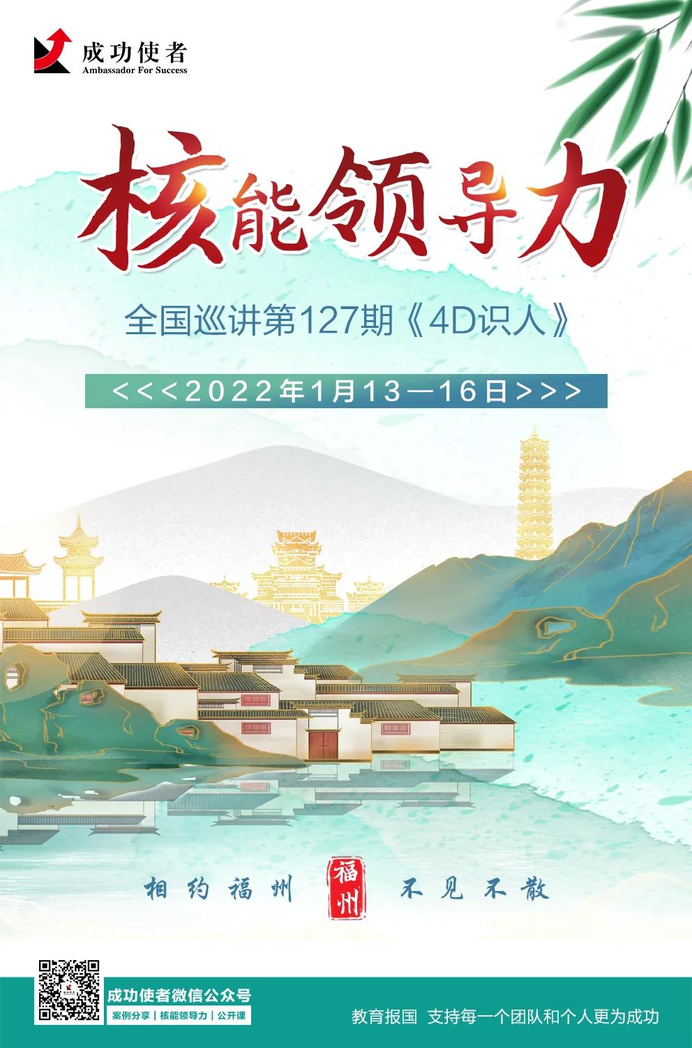 您好!成功使者集团《核能领导力——4D识人》将于2022年1月13-16日召开,特诚挚邀请您参加学习!