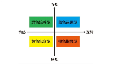 4D是源自于NASA(美国航天航空局)领导力和团队发展实践的成果,是一项具有科学性、全面性、简单实用的系统性管理工具。组织中最常见、最重要的两个行为是资讯收集和做决策。在这两个行为中,不同的人有不同的资讯收集倾向和做决策的倾向,这是一种天性的呈现。根据这个原理,人可以被分成四种类型,即4个Dimensions (简称 4D ),分别为绿色培养型、黄色包容型、蓝色远见型和橙色指导型。