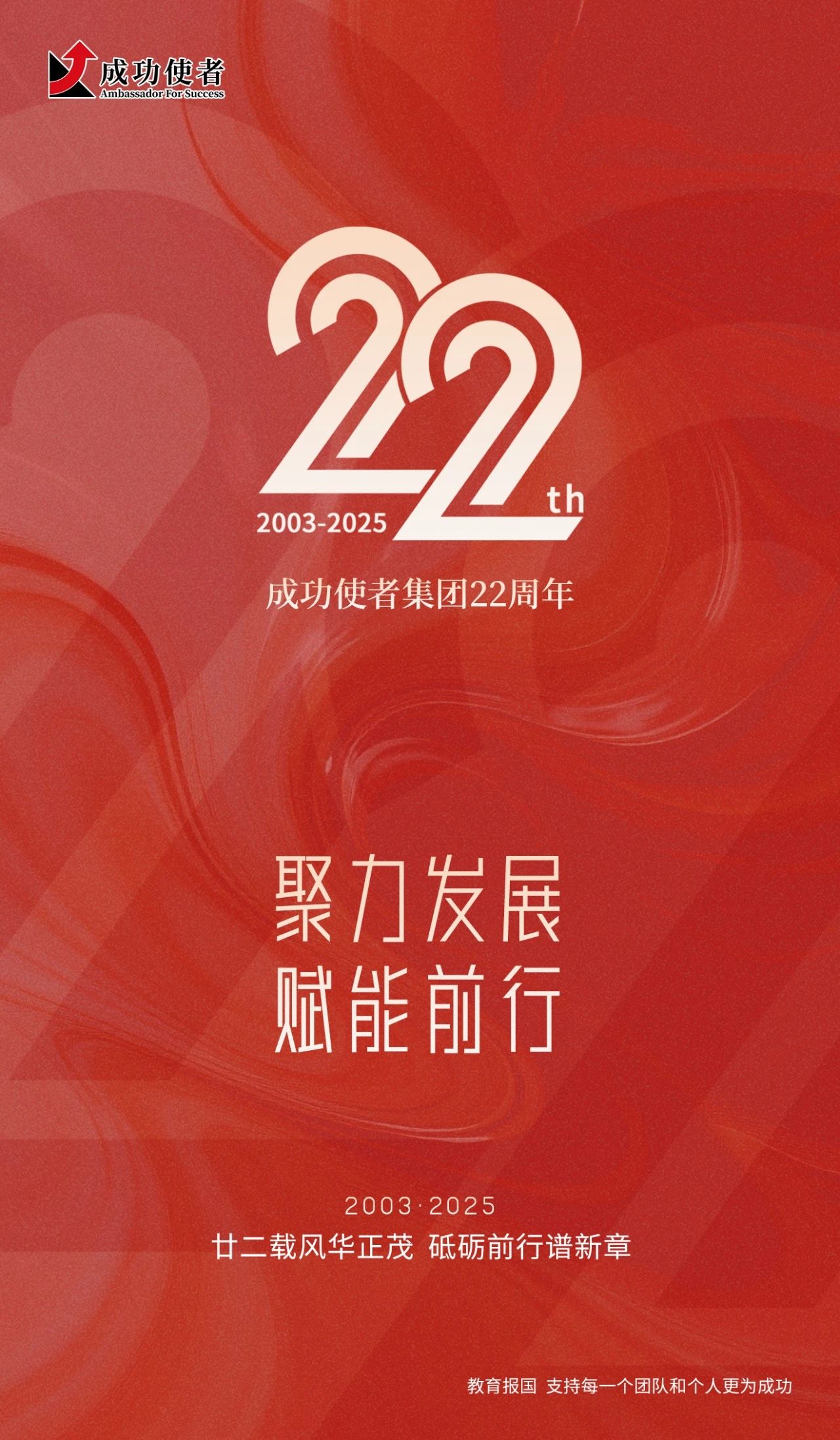 22年风雨兼程,成功使者始终以初心致匠心,感恩每一位合作伙伴的信任与同行。展望未来,22年正风华,成功使者将以此次战略会为起点,聚力再出发,持续支持和赋能每一个团队和个人,书写更辉煌的篇章!