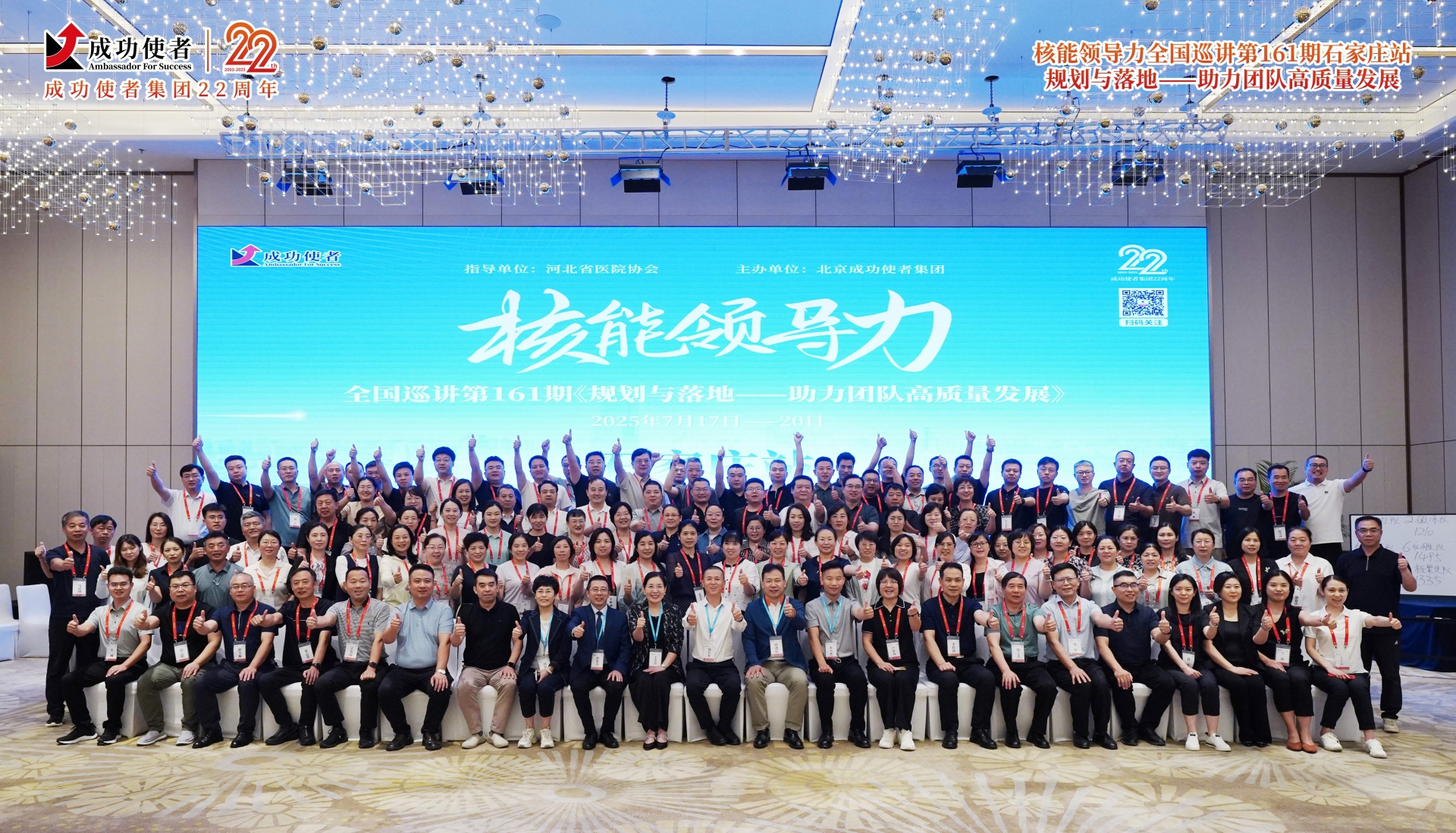 7月17日-20日,由河北省医院协会指导、成功使者集团主办的“核能领导力”第161期全国巡讲石家庄站成功举办。本次课程为“规划与落地”模块,吸引了40家医院的近200位领导者参与。