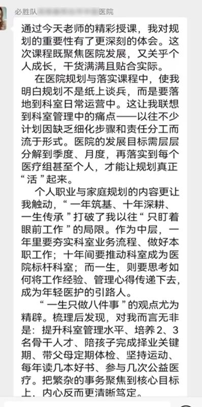 杨老师表示,人生如行远路,规划是指南针,医院领导者应借助规划找准突破口,为医院高质量发展赋能。