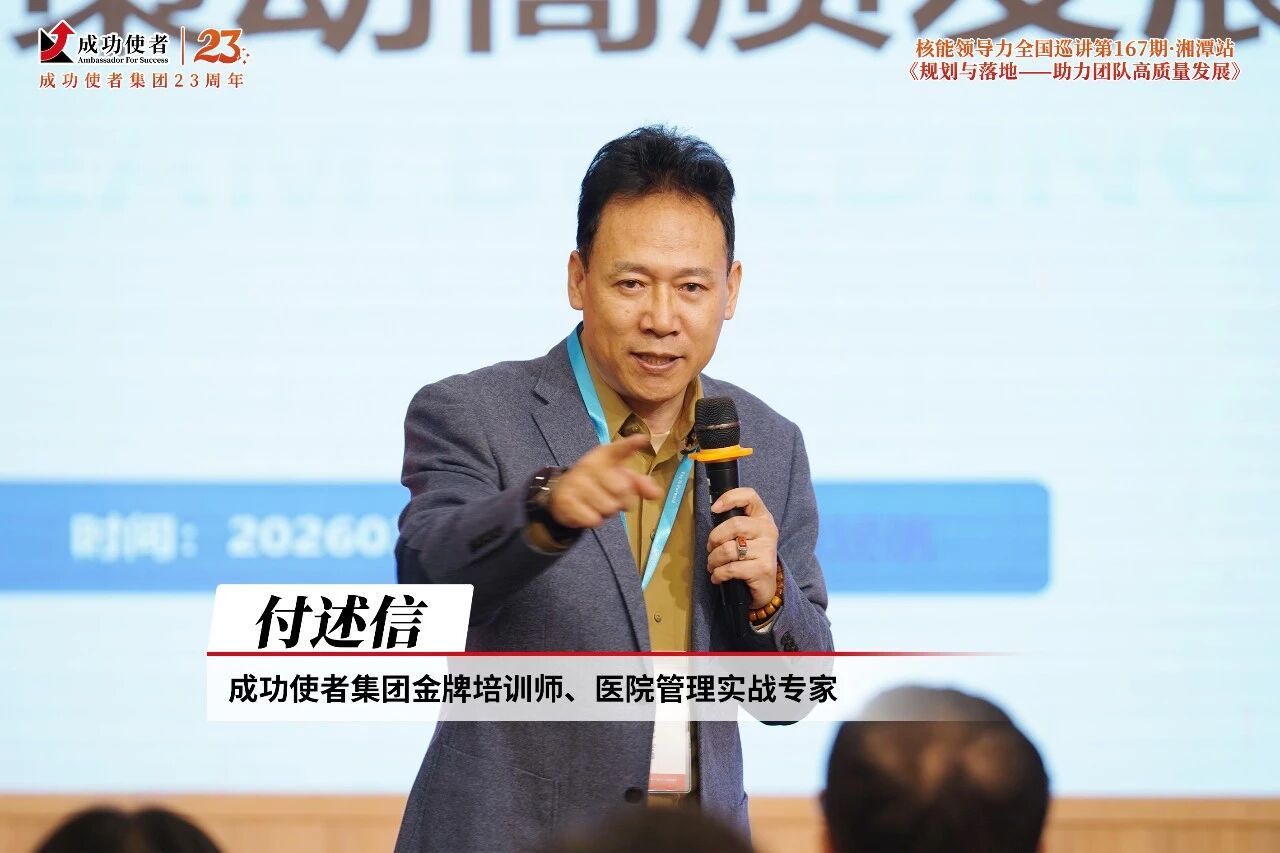3月19日-22日,成功使者集团品牌公开课《核能领导力》第167期全国巡讲湘潭站成功举办。本期课程以《规划与落地》为主题,聚焦“十五五”规划与落地、运营管理实战、领导力跃升等核心议题,吸引了全国各地200余位医院高层管理者参与学习。