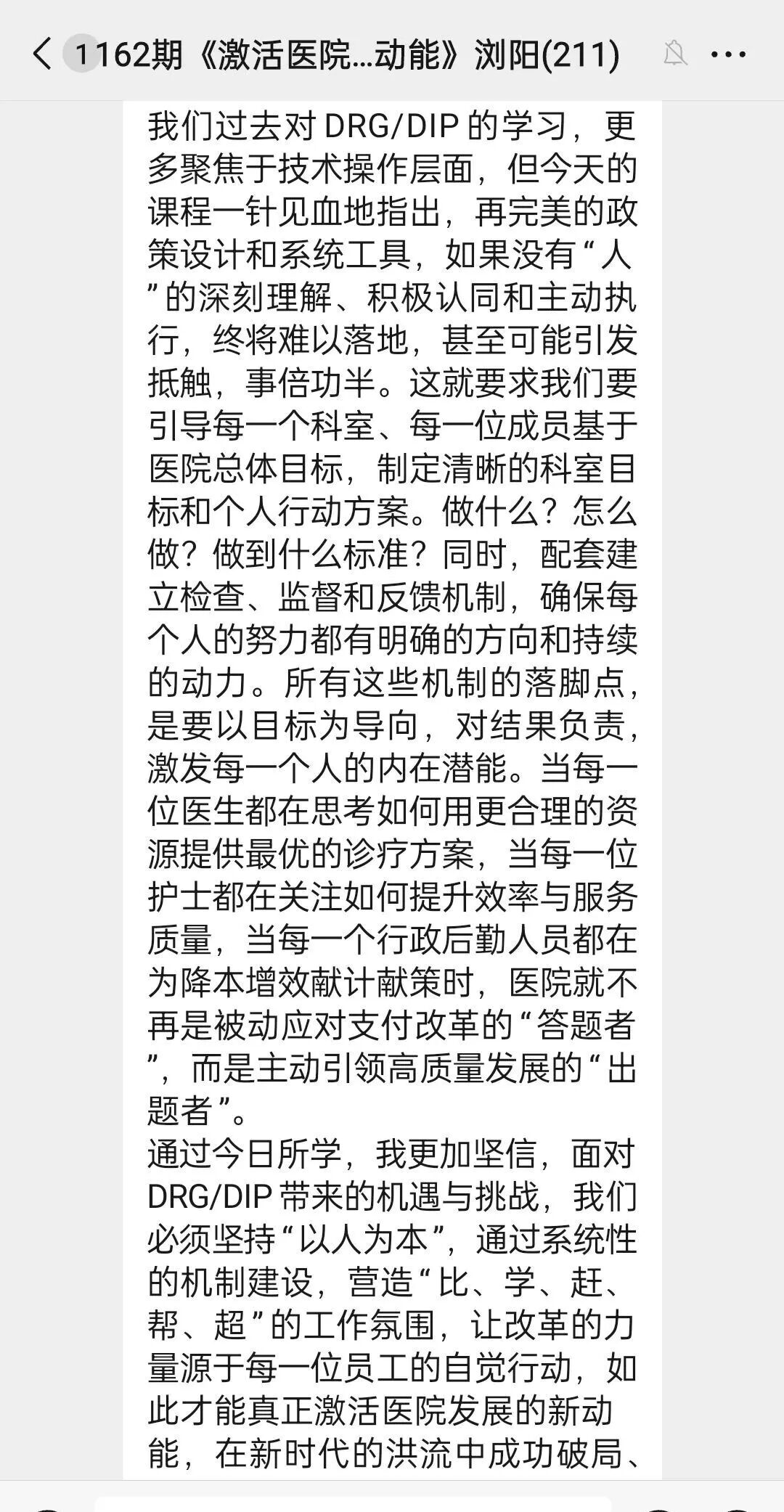 3.提高医院领导者的格局站位与领导能力,学会调动全员参与运营管理的主动性和积极性,提升医院高质量发展新效能。